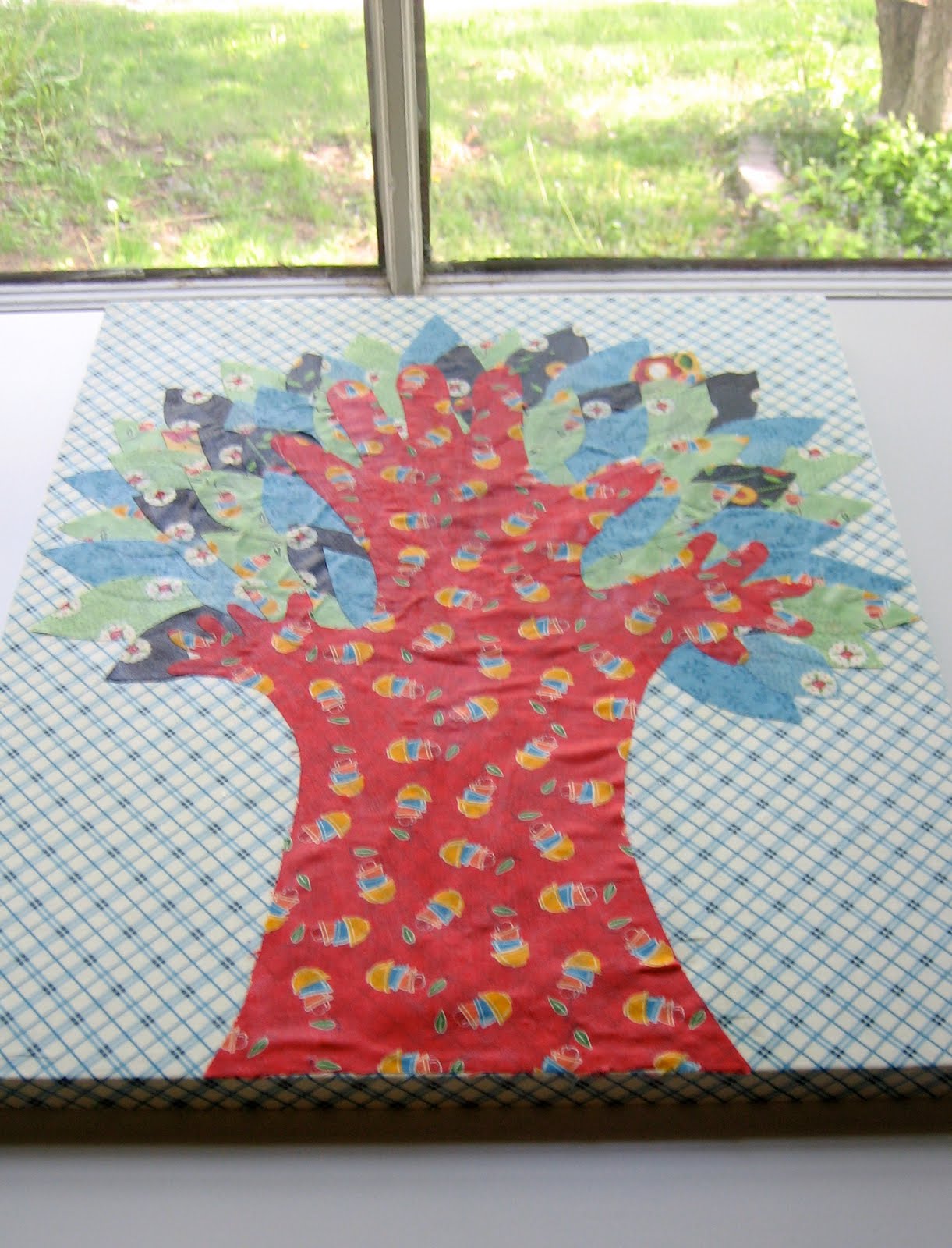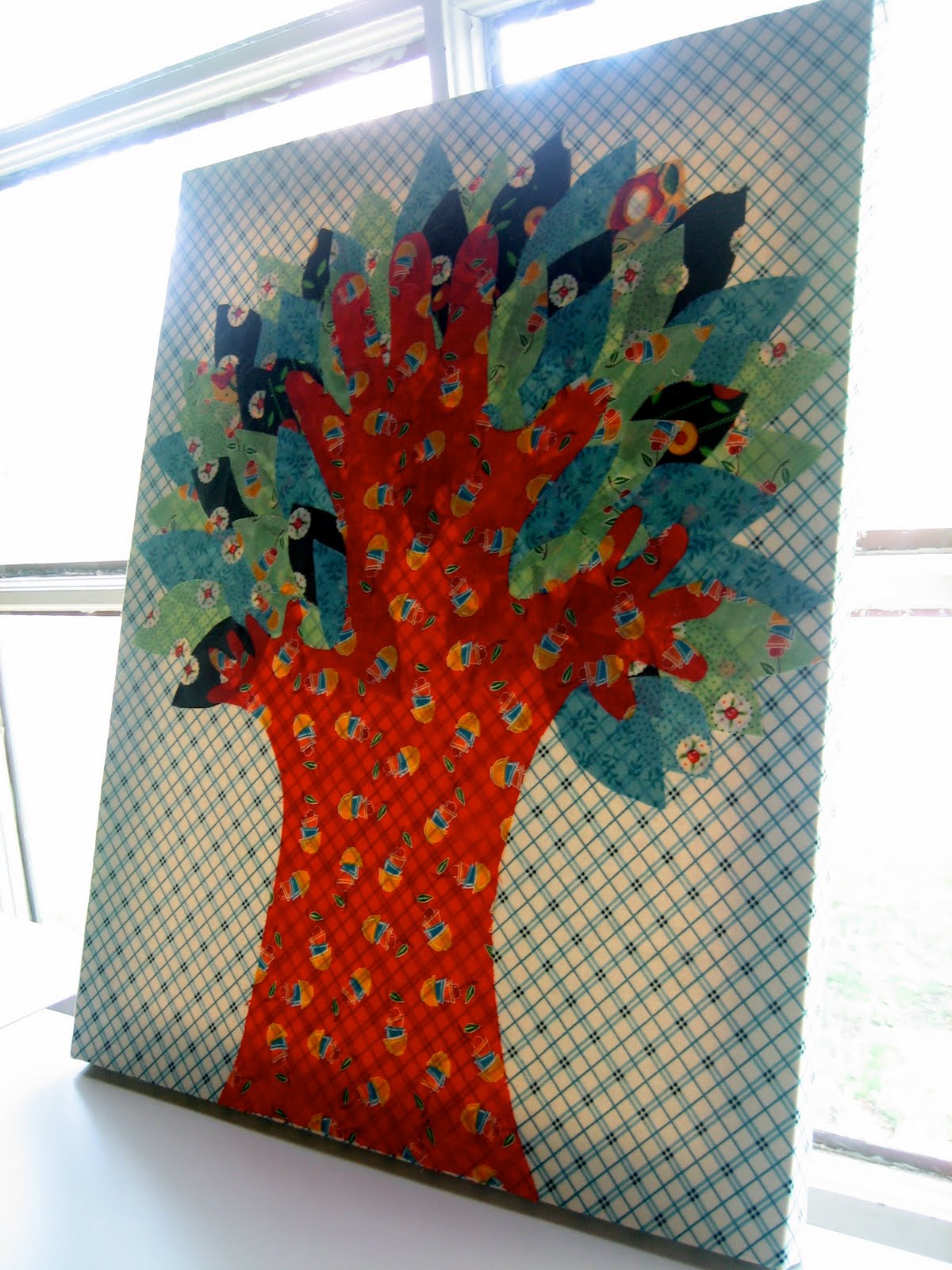 This tree is made from Mary Engelbreit’s “Recipe for Friendship” fabric line. My Mom is working on re-doing her sewing room and I knew this art-work would go great with the rest of her decor.