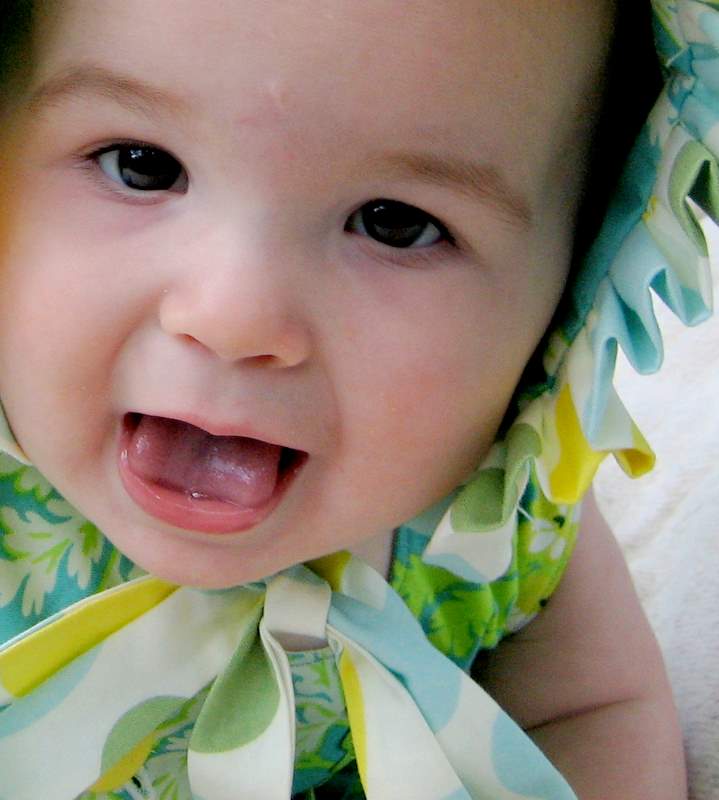 My sweet Matilda Jane’s 1st birthday is in a month – she was born 7/8/09 (cool birthday, right?). As it goes with the second child, Matilda doesn’t get very many things that are just for her, so I had to make sure I really turned it up a notch for her special birthday outfit. And I really think this might be one of my most favorite little creations ever!