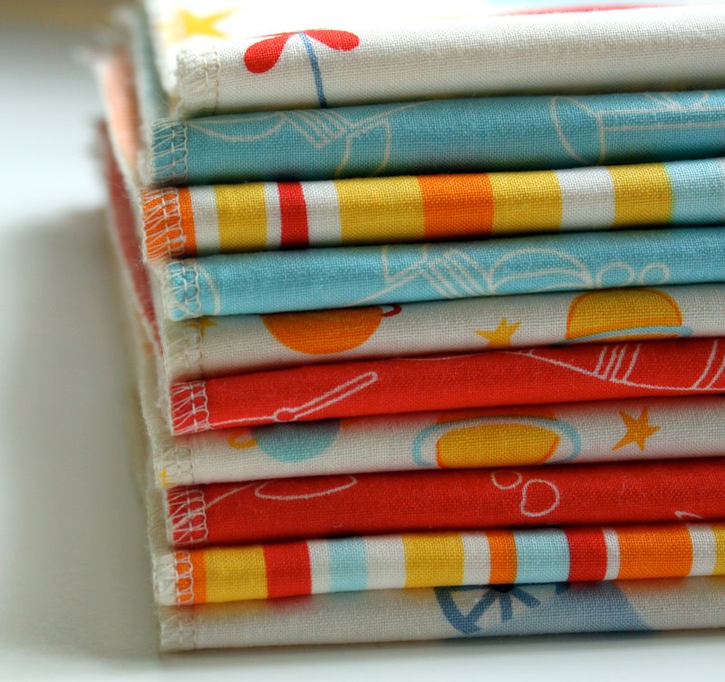 I used a wide variety of fabrics from David Walker’s “Robots” collection. I love how these can be put together as burp cloth sets. I don’t think I will be listing these in my etsy shop, but they will be great for shows and make wonderful gifts!