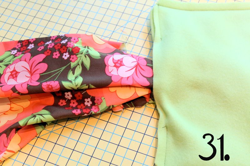 Oops!! I typed wrong – I meant step #31, where you have the exterior fabric being fed through that opening in the fleece before being sewn along the top edge. Does it not work to just set it into the fleece from the top?