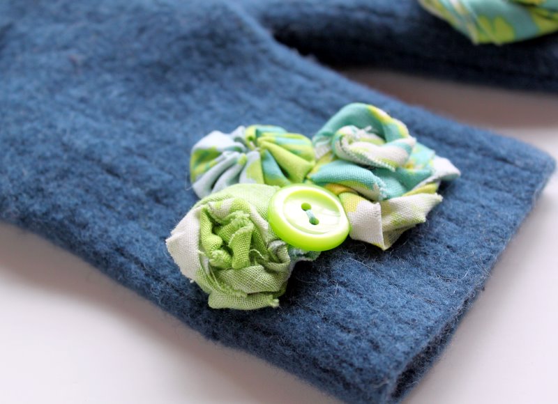 I don’t know if you remember this post on felting wool, but I felted SO many sweaters that I am up to my neck with felted wool in my house. I pulled out my gazillion felted sweaters for another project (to be shared next week), stuck my hand inside the arm of one of the sweaters and thought, “ah, ha!”……Felted Fingerless Gloves! I had also seen Shannon’s “Comfy Wrist-Warmer Tutorial” recently so I think that idea was sitting in my subconscious and helped to inspire this little tutorial. Thanks Shannon!