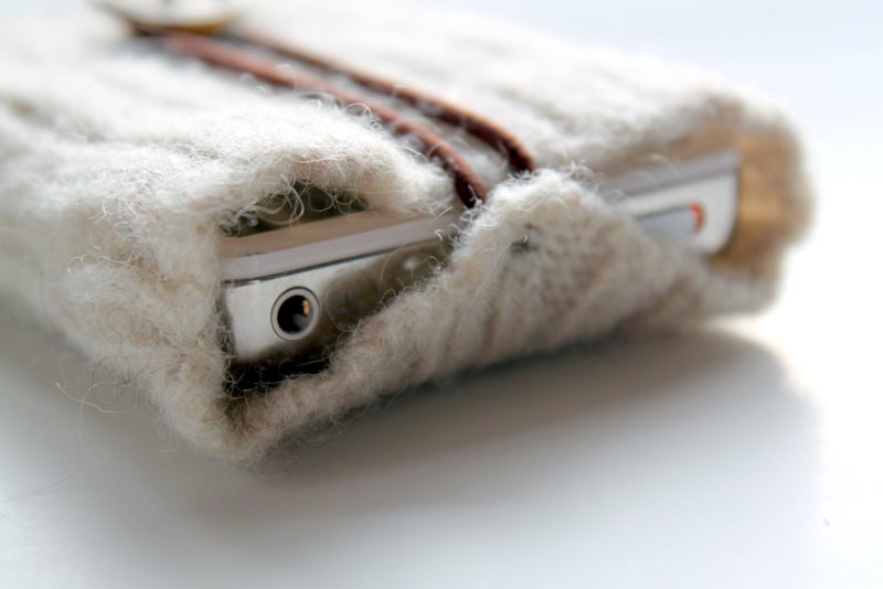 I wanted to share this post with you last week, but seeing as though this was a Christmas gift for my hubby, I had to hold off. This I-pod cozy is made from the end of the sleeve of a felted wool sweater. You can alter this tutorial to fit any kid of small electronic device – I-pod, I-phone, or use the entire body of the sweater and make one for your I-pad or Kindle.