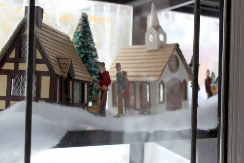 The houses in this Christmas village were made by my late Grandpa Jim. He always loved working with his hands. He made me an incredible doll house when I was a child and enjoyed building model planes as well. It is very special for us to have his Christmas village that he built.