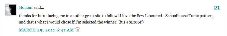 Congratulations to Honour and Cheri! You will each be receiving a pattern of your choice from our fabulous blog sponsor, Fairytale Frocks and Lollipops! Please email thecottagemama [at] gmail [dot] com with your contact information. Thanks so much to all who entered!