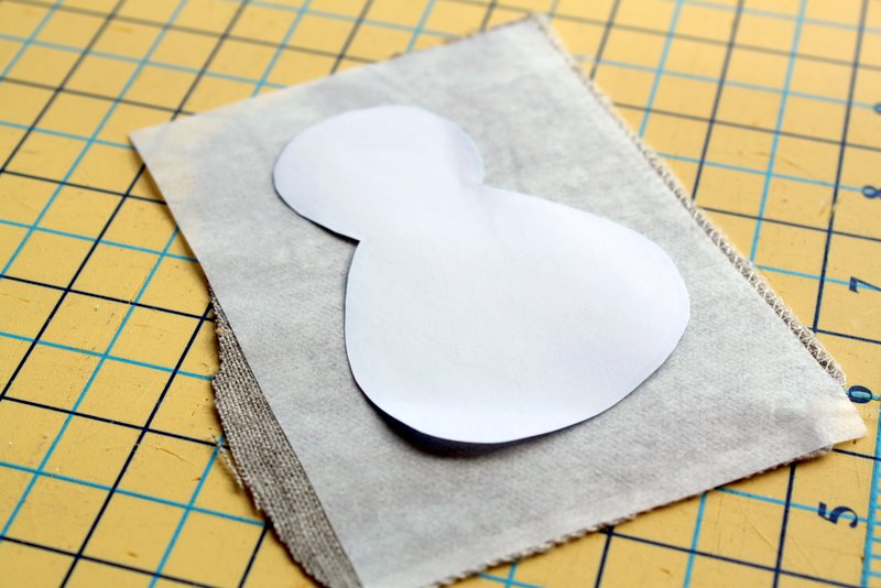 Apply interfacing to the fabric you are using for the body of the turkey. I chose to use a linen/cotton fabric for the body to add a little texture. Use whatever fabric you like (cotton, linen, felt, fleece, minky, chenille). Trace the turkey body from the turkey template. Cut out turkey body.
