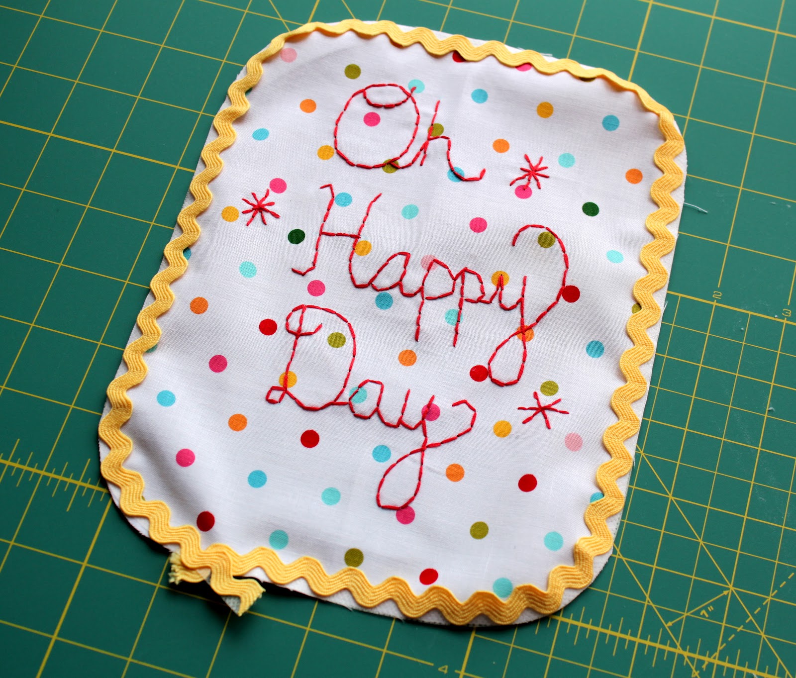 oh my goodness, this is so stinking cute! That Oh Happy Day embroidery, and the big bow – I LOVE IT!!!