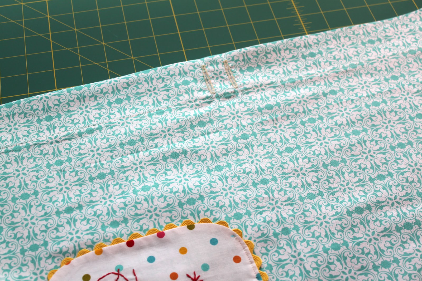 I’m going to assume everyone does button holes a little different depending on what kind of machine you have. I have a button hole foot on mine, so that’s what I use. If you need a button hole tutorial, you can check out this one from Sew Mama Sew. Do not be afraid of the button hole – they really aren’t as hard as they look!