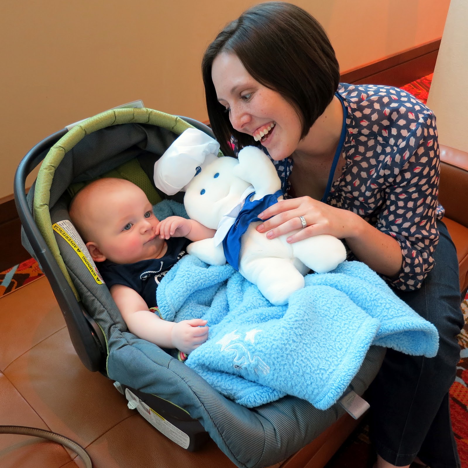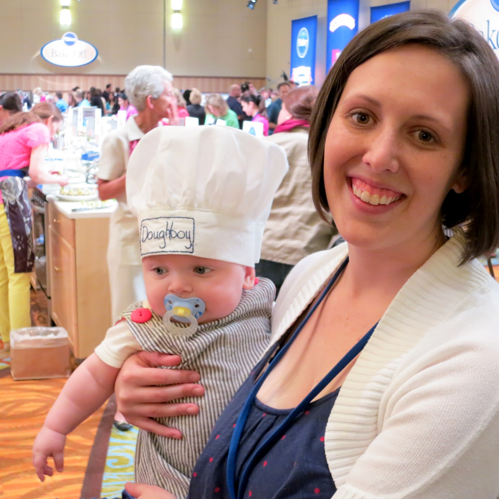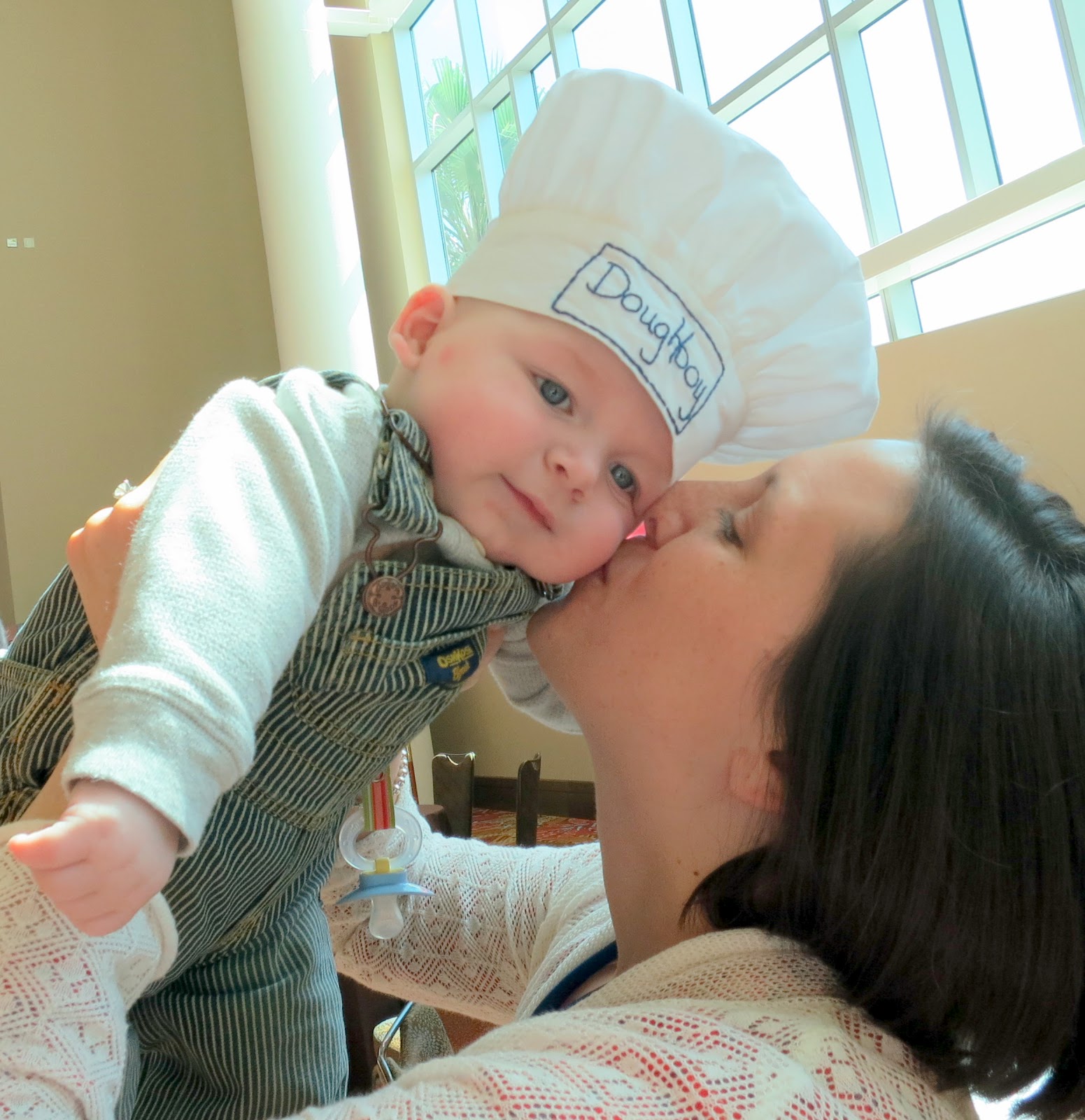 My little man, Caspian Finn, slept through the first several hours of the Bake-Off in his stroller (he was a little under the weather). Once he finally woke up, I took him out of the stroller and put on his Doughboy hat that I made for him. I made a basic chef hat in white and embroidered ‘Doughboy’ on the front. And let me tell you………Caspian was a HUGE hit! He had media swarming him……Martha Stewart’s crew, Pillsbury, General Mills, Better Homes and Gardens, ect……The President of Pillsbury even asked me to take him over to have his picture taken with the real Doughboy. We had so much fun!