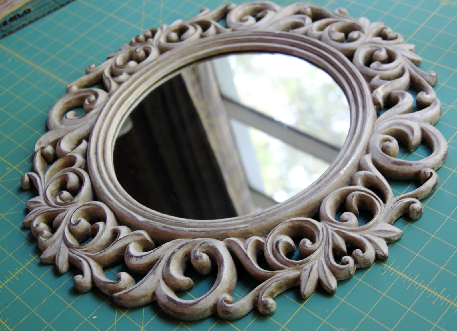 I head to our local Joann’s a picked up a small tube of Martha Stewart Craft Paint in a Satin finish. I thought about spray painting the mirror, but I really couldn’t find anything that was just the right color. When I saw Martha Stewart had a color called ‘Blueberry’, I knew that would be just right. This paint is usually $1.99 at my Joann’s, but I had a coupon, so it was only .99 cents!