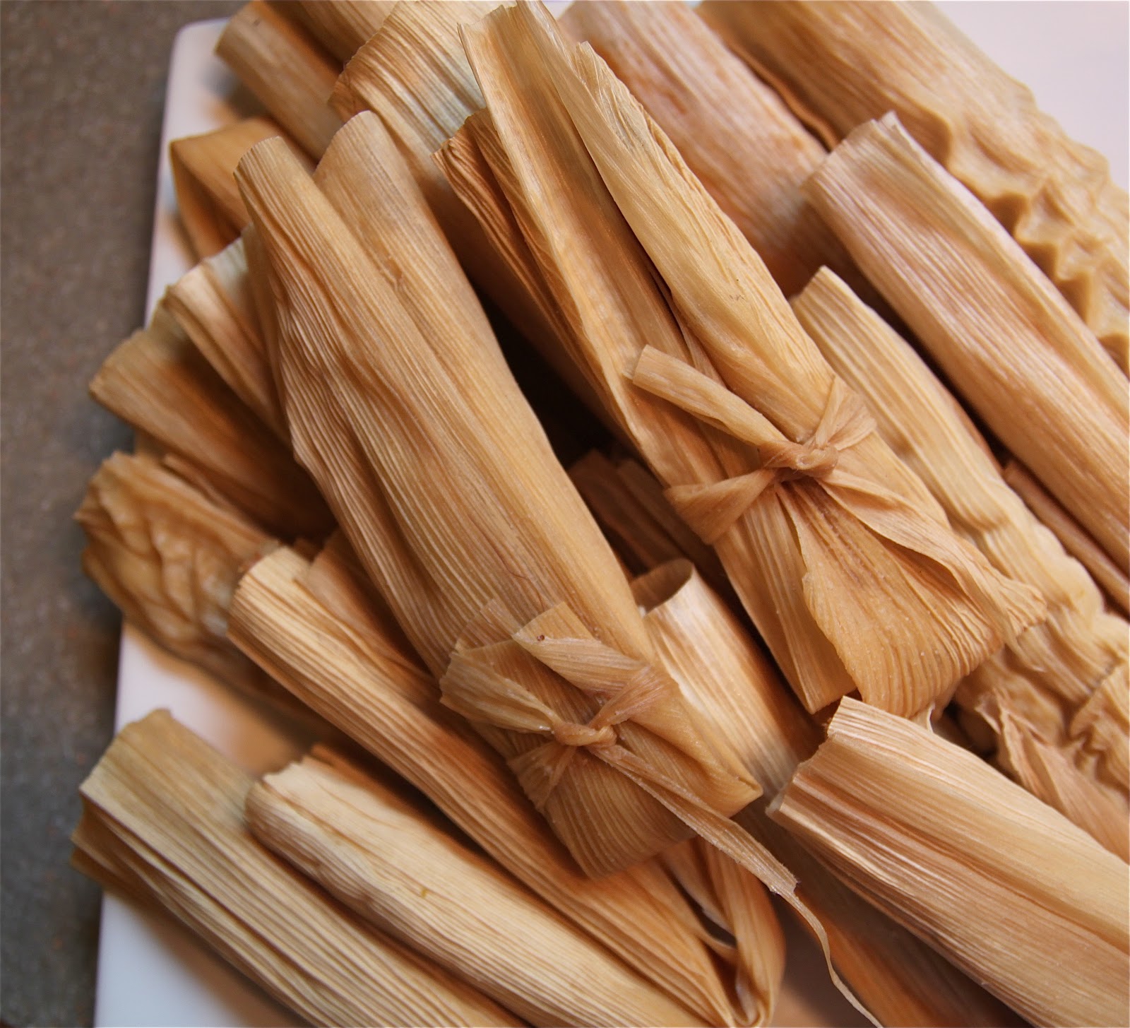 To eat the tamales, remove from the corn husks and enjoy! Consider serving with sour cream, salsa or guacamole.