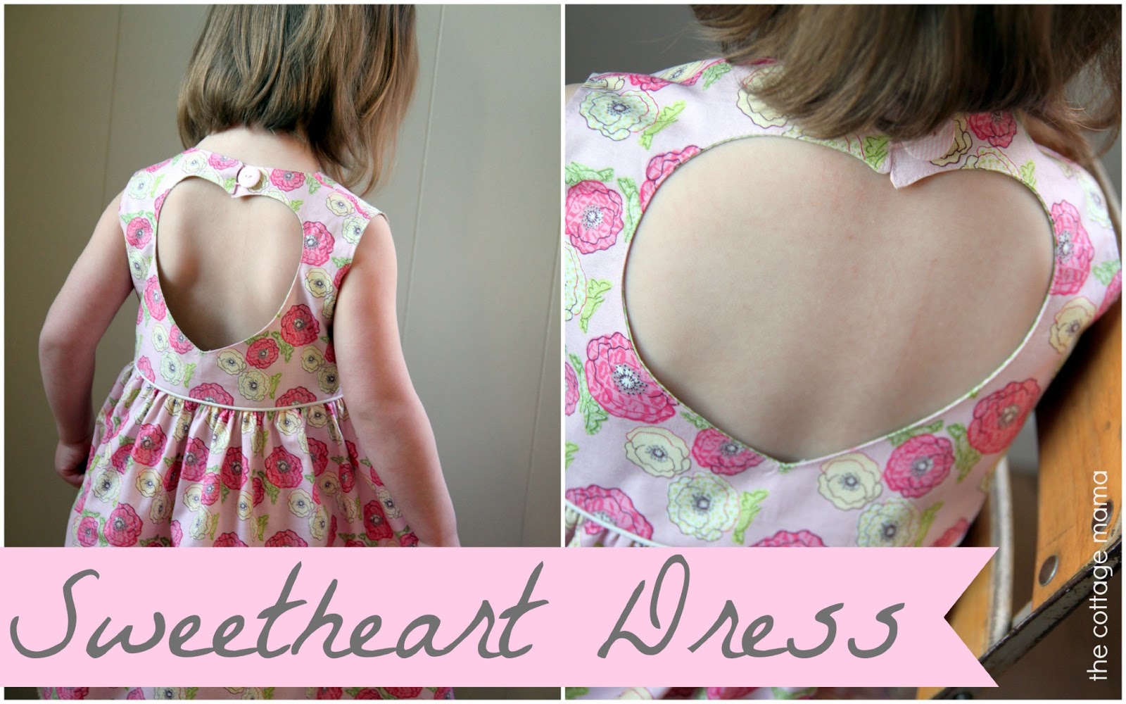 How sweet is the back of this dress? I am kind of in love with the little heart cut out. I just think this could not be more perfect for Valentine’s Day. This is the Sweetheart Dress pattern by Shannon Cook from Luvinthemommyhood. She has several blogger’s sewing up her adorable pattern for a mini-pattern tour that she is doing and she invited me to join along. So fun!