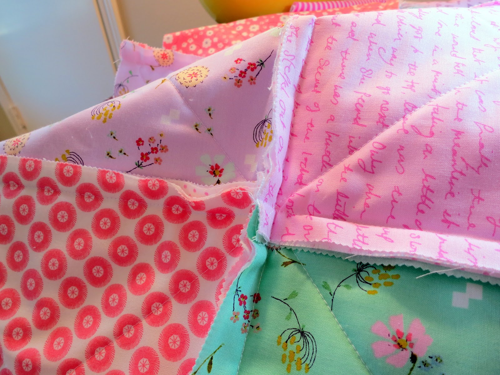 Oh, and I’ve made flannel and fleece ones without batting. I’ve also used flannel for batting with other flannel or with quilting cotton. Clearance flannel sheet sets (from my fave – Target) are fun to use for the main fabric, backing, or batting (depending on if it’s a solid or print). I’ve gotten king-size sheet sets at Target for $8 – a TON of great fabric!
