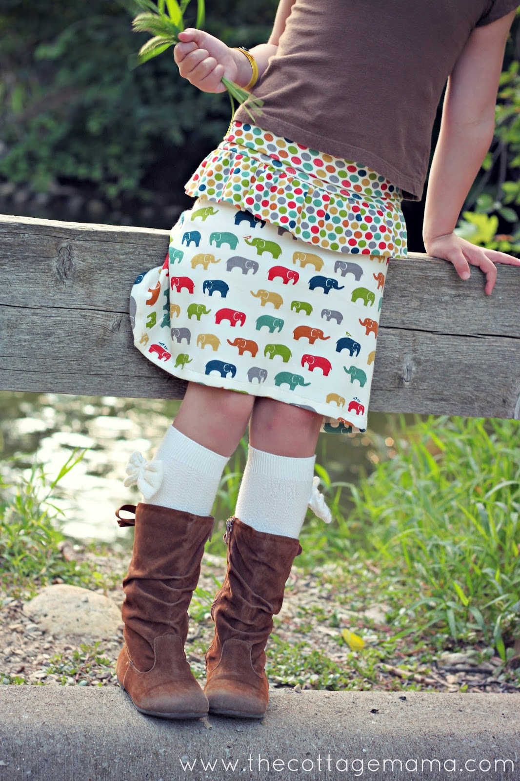 This pattern is available for you in size 12 month through size 12 and features an A-line style knit cotton skirt with a comfortable yoga style waistband. It’s a super-simple design, but is a great wardrobe staple for your little one. You can leave off the ruffle if you have a little bit older girl who prefers things a little less girly, but I think the ruffle is really sweet………especially for little ones.