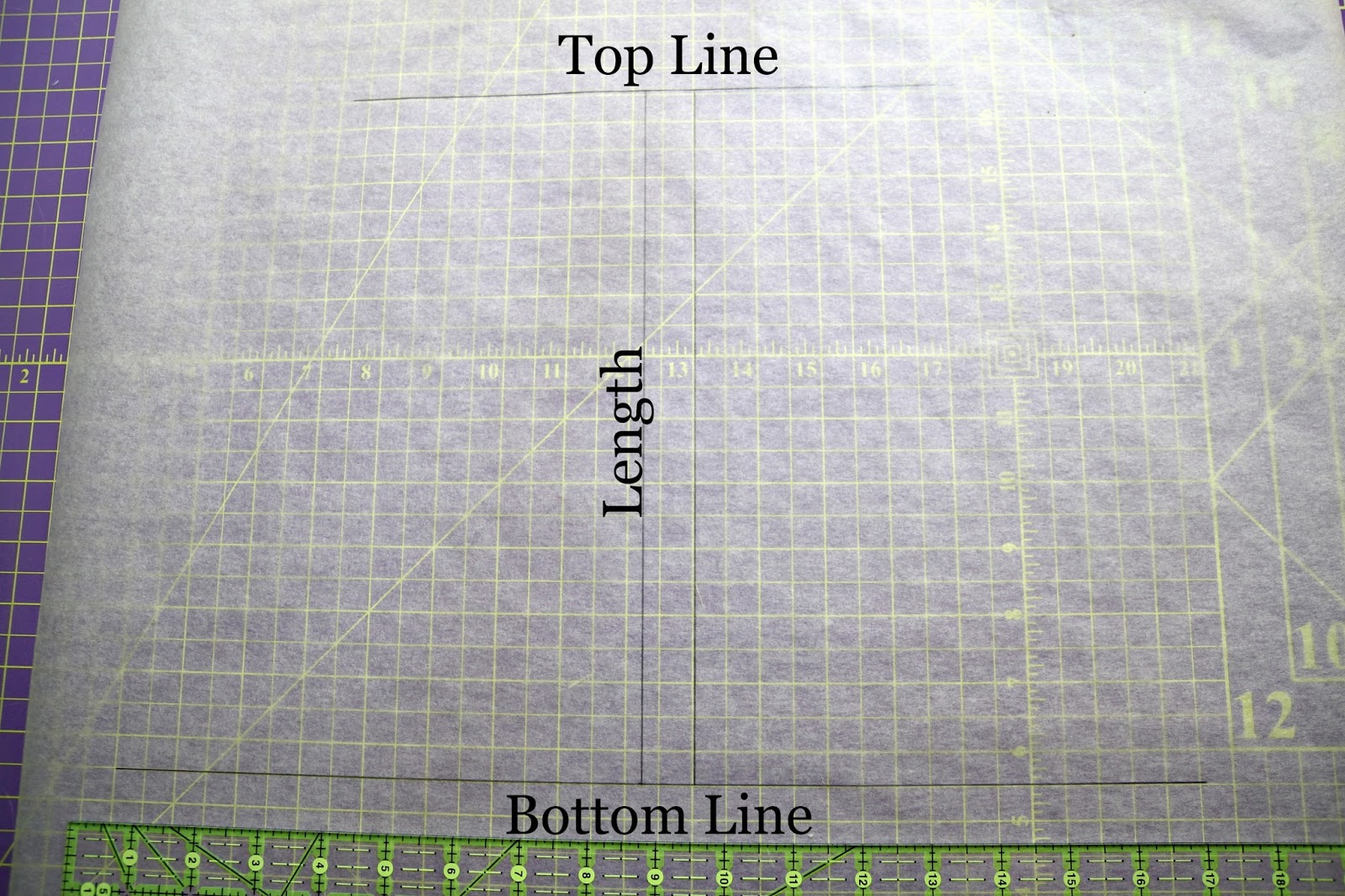 Now that you have your Top Line and Length lines drawn, you need to draw the Bottom Line. Divide the Bottom Line measurement in half. That number should be matched up with the bottom of the length line (which is down the center). This will help you to center your Bottom Line. Draw the Bottom Line horizontally.