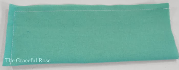 Sew along one of the short edges and around to the long edge. Clip your corners, turn right side out, and press. Fold raw edge under 1/2 inch and press. Top stich all the way around.